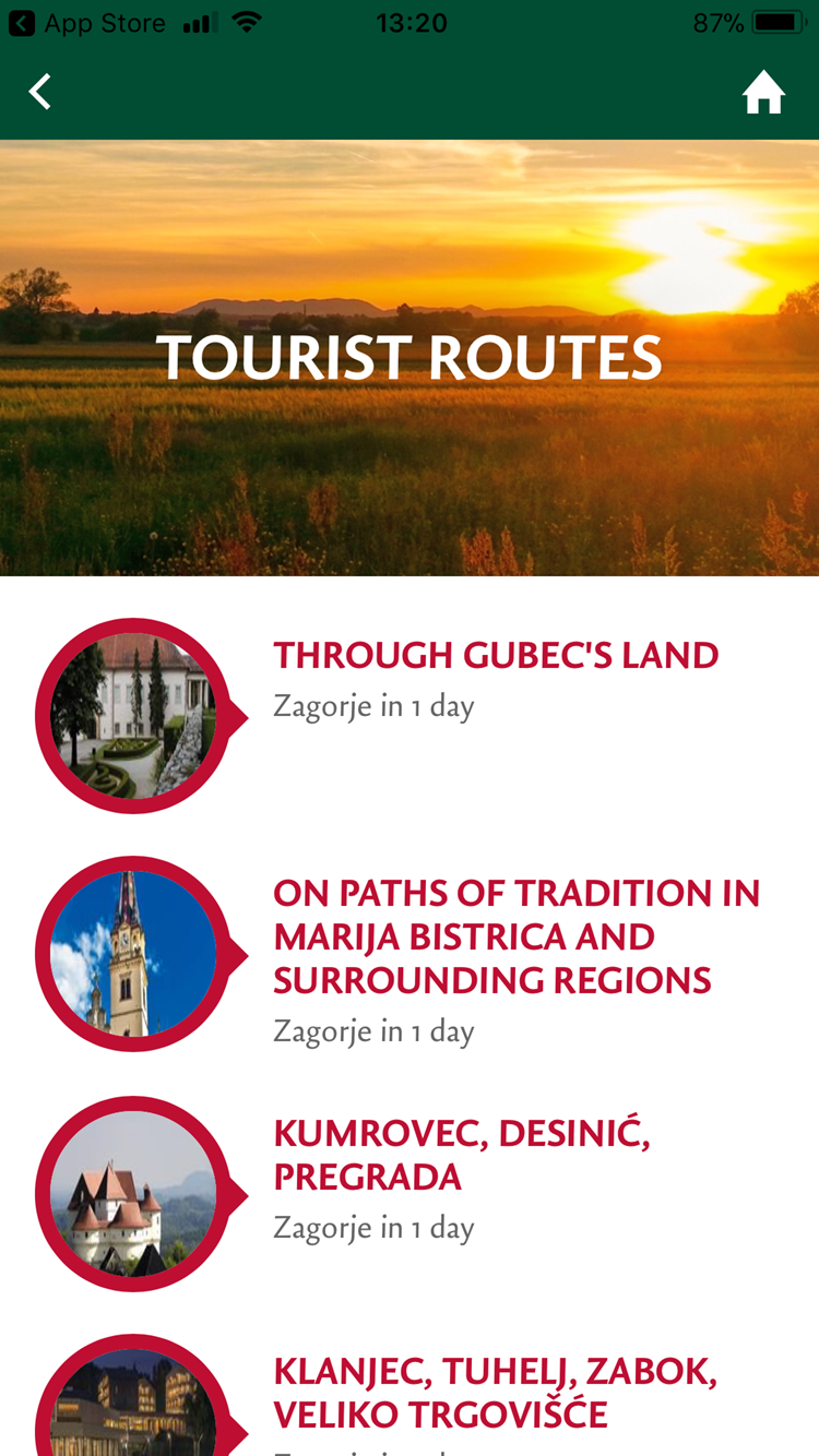 U sklopu ovog projekta napravljena je i mobilna aplikacija Visit Zagorje dostupna na iOS i Android uređajima. Aplikacija nudi informacije o dvorcima i muzejima Hrvatskog zagorja, hotelima, toplicama, restoranima, centrima za posjetitelje, znamenitostima, starim zanatima, crkvama i trgovinama. Isto tako, aplikacija koristi tehnologiju AR (proširene stvarnosti) koja omogućuje korisniku prikaz turističkih objekata skeniranjem QR kodova. Kodovi turisti mogu pronaći na interaktivnim turističkim kartama koje su dostupne na raznim lokacijama te je pomoću njih moguće dobiti dodatne informacije o određenim točkama interesa (POI).