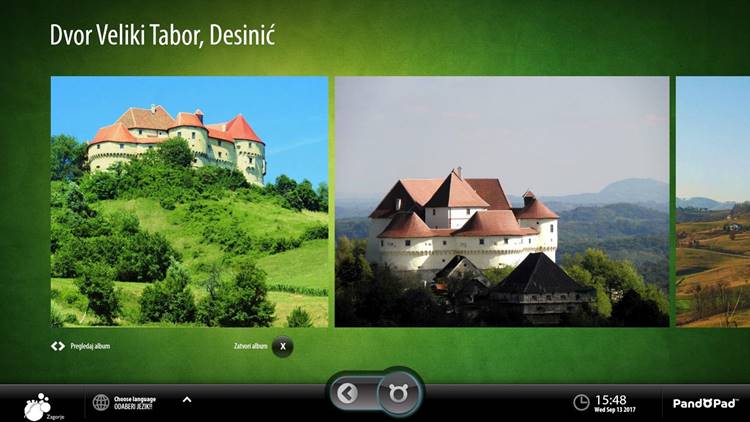 Na unutarnjoj i vanjskoj interaktivnoj PandoPad jedinici posjetitelj može vidjeti galerije fotografija, odnosno, proći slikovitu priču Zagorja po odabranim oblicima turizma, pogledati video priče, prolistati brošure, ili čak odigrati igre s motivima Zagorja. Posebno je zanimljiva igra Geolocator koja umjesto da nudi odgovore na pitanja u tekstualnom obliku, od igrača zahtjeva da odgovore dodirivanjem točne pozicije na geo mapi. Ono što izaziva najveći interes kod posjetitelja je mogućnost slanja e-carda (elektroničke razglednice) i snimanje selfija s pozadinskim motivima Zagorja ispred turističko informativnog centra.