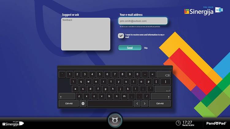 Uz primjenu naših proizvoda: PandoPad® Manager, PandoPad® Applications, PandoPad® FLOOR 22“, PandoPad® FLOOR 32“ i PandoPad® FLOOR 54“ jedinica, realizirani su svi interaktivni servisi potrebni za informiranje i predstavljanje konferencije Microsoft Sinergija 14.