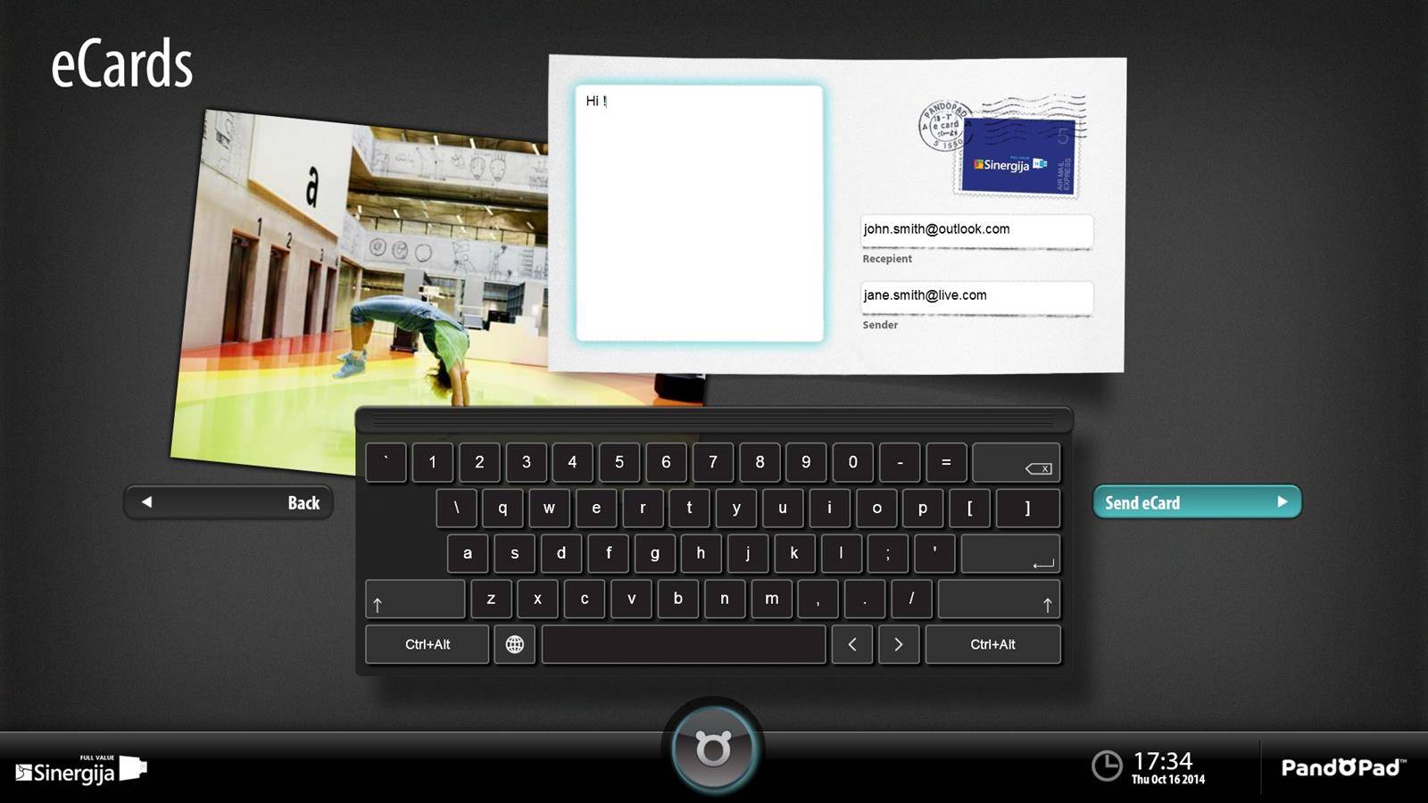 Na ovom primjeru vidimo aplikaciju PandoPad® eCard putem koje korisnici mogu odabrati jednu od ponuđenih slika i pomoću integriranog e-mail sustava poslati virtualnu/digitalnu razglednicu.